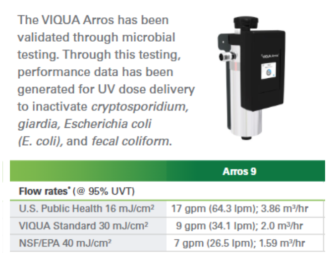 Premium residential UV disinfection system, microbially tested and validated for Cryptosporidium, Giardia, E. coli, and fecal coliform inactivation